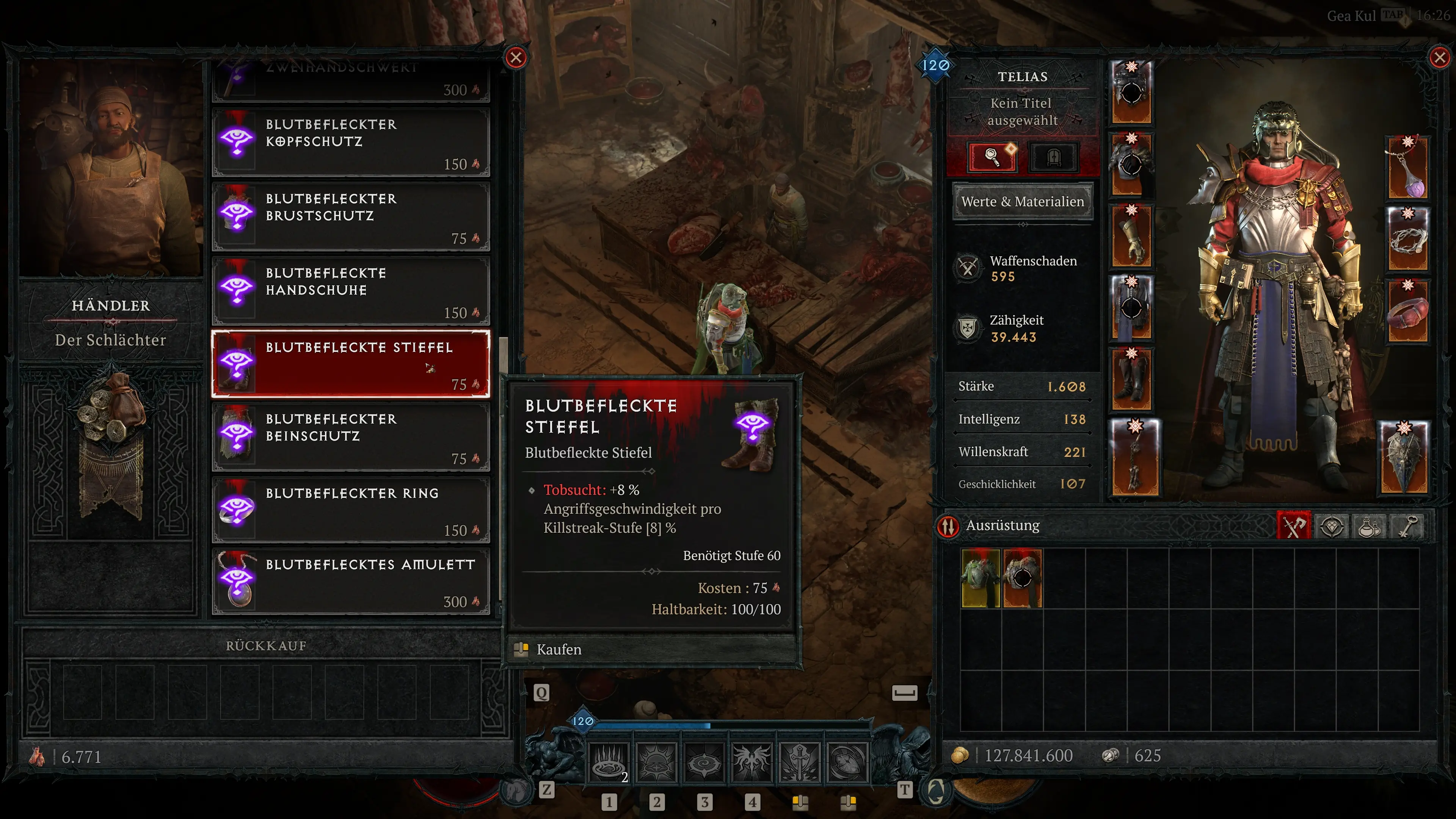 Das System bei Kael Rills funktioniert ähnlich wie das bekannte Glücksspiel. Du kaufst einen Gegenstandstyp, ohne die genauen Werte oder die Qualitätsstufe zu kennen. Der Clou: Ein spezielles blutbeflecktes Affix ist bereits vor dem Kauf sichtbar, sodass du gezielt nach bestimmten Boni suchen kannst.